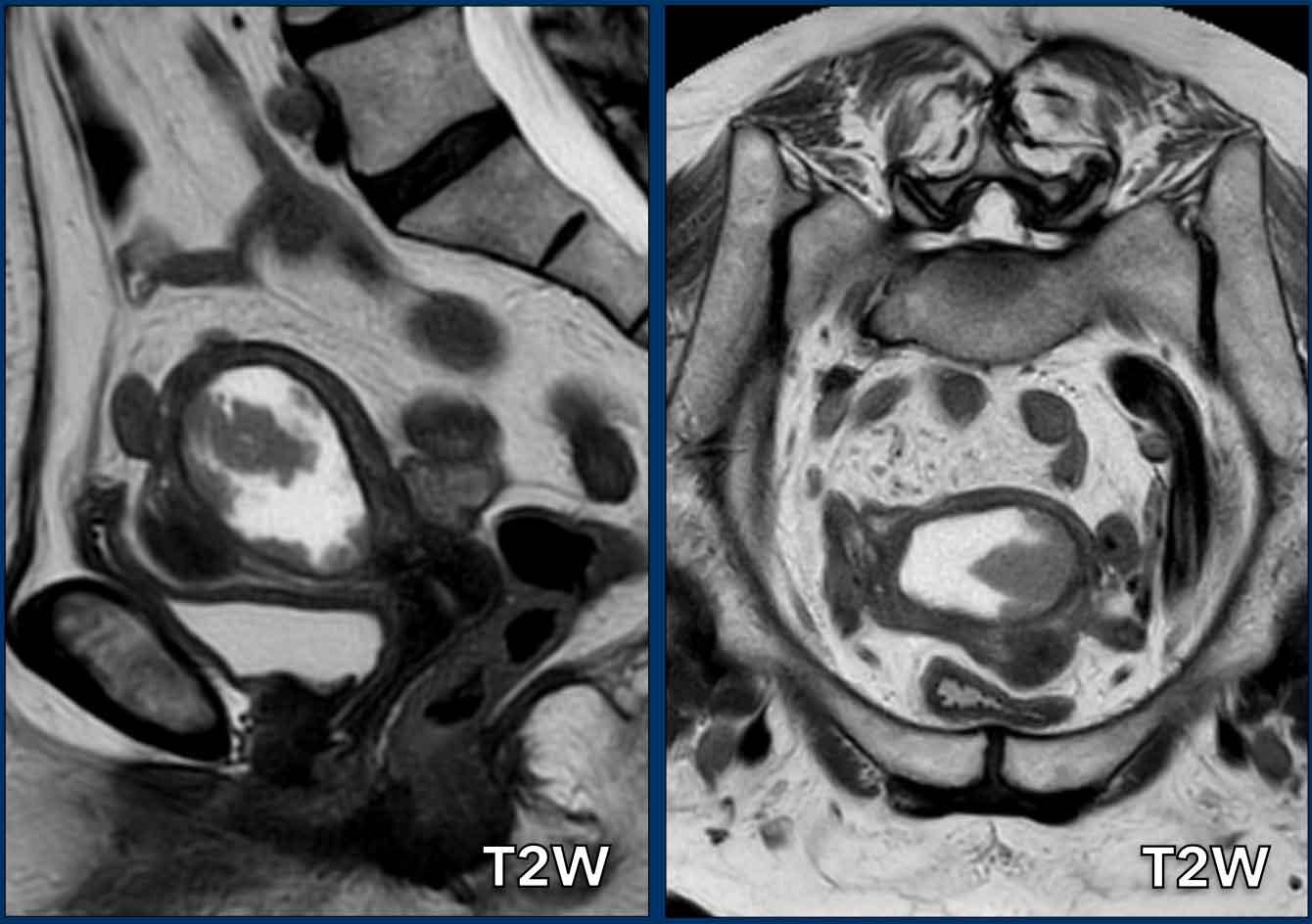 Giải phẫu tử cung được thể hiện rõ nhất trên chuỗi xung T2W.