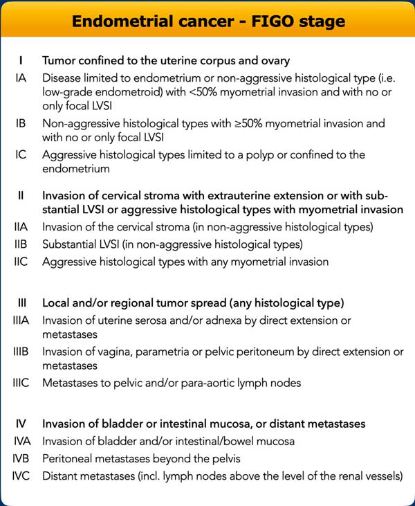 Hệ thống phân loại giai đoạn của Liên đoàn Sản Phụ khoa Quốc tế (FIGO) được sử dụng phổ biến nhất để phân giai đoạn ung thư cổ tử cung và ung thư nội mạc tử cung, vốn được thiết kế theo truyền thống như một hệ thống phân giai đoạn lâm sàng – phẫu thuật.