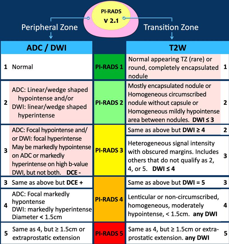 Bảng này dựa trên PI-RADS phiên bản 2.1.