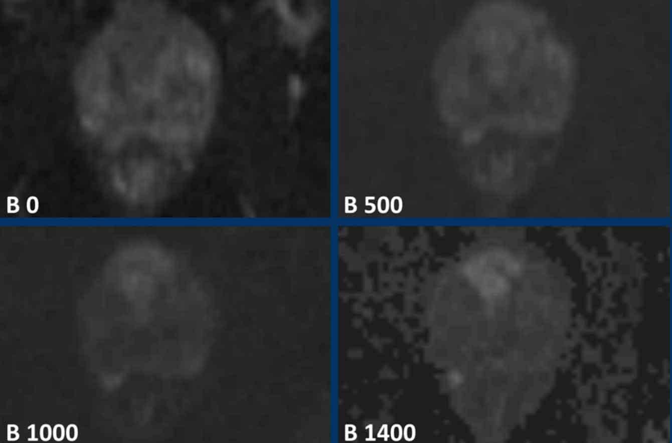 Bộ ảnh với giá trị b cao (≥1.400 sec/mm2) cũng là bắt buộc (ưu tiên thu nhận từ một lần chụp riêng biệt hoặc tính toán từ các ảnh có giá trị b thấp và trung gian). - DCE