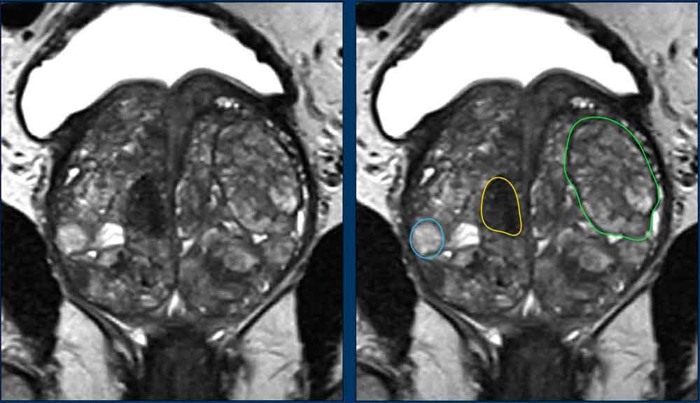 Việc xác định chính xác vùng giải phẫu (Vùng Ngoại vi so với Vùng Chuyển tiếp) là rất quan trọng, vì chuỗi xung chủ đạo được sử dụng để xác định điểm PI-RADS thay đổi tùy theo vị trí.
