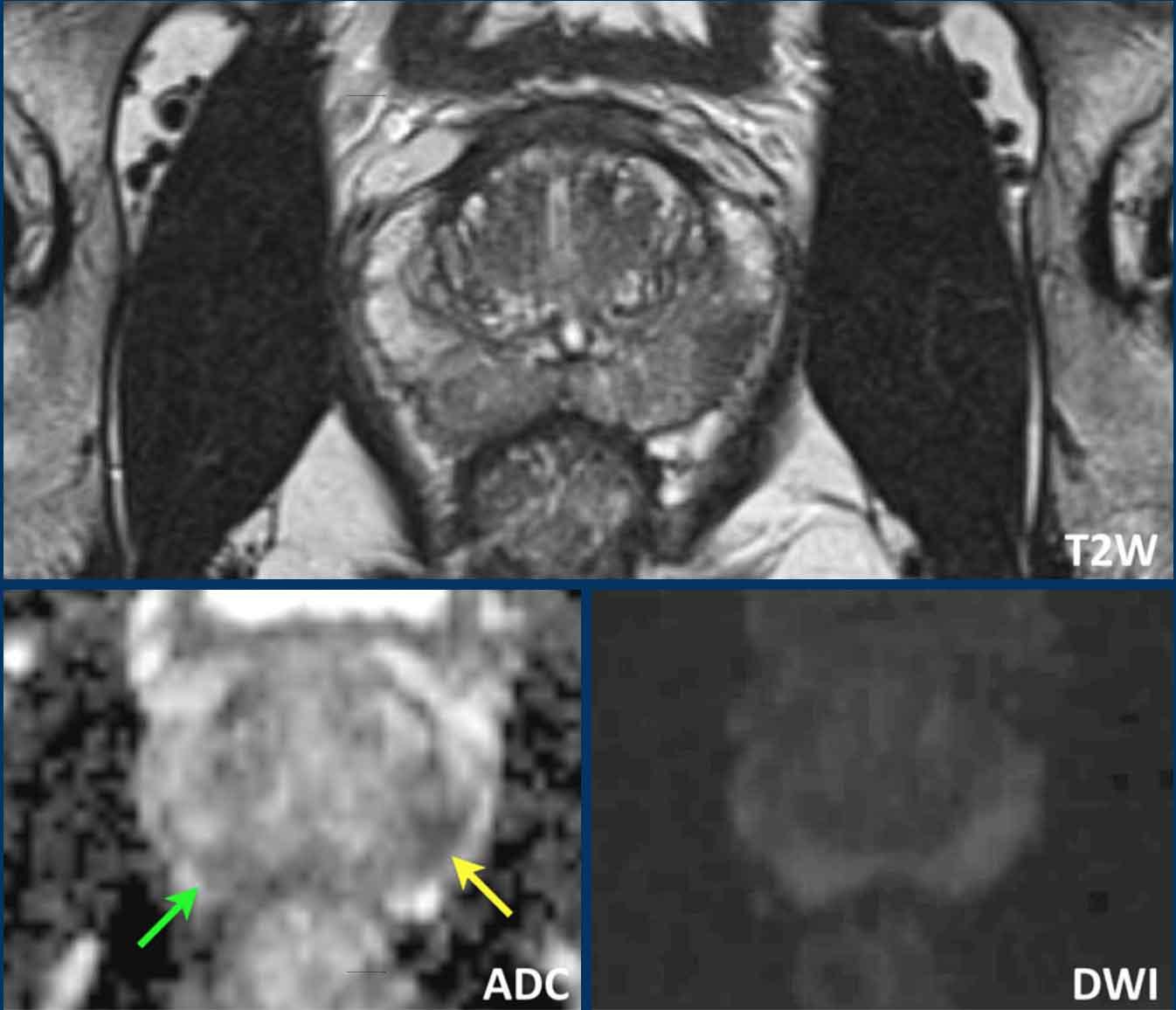 Sự hiện diện của khí và phân trong trực tràng gây ra xảo ảnh biến dạng tuyến tính rời rạc tại vùng tuyến tiền liệt, làm hạn chế độ chính xác chẩn đoán của cả chuỗi DWI và ADC.
