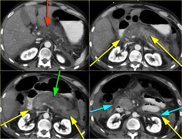 Các hình ảnh thuộc về một bệnh nhân viêm tụy cấp.