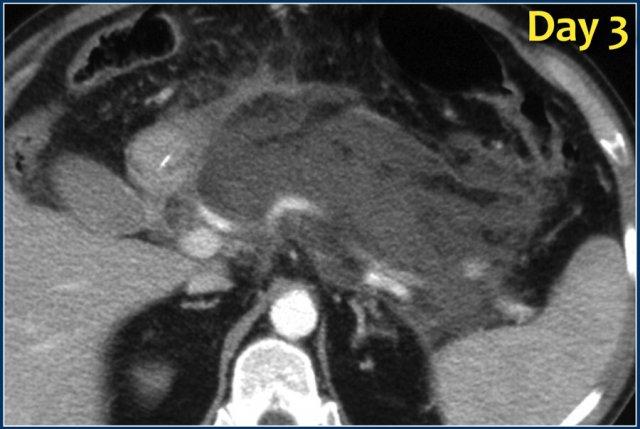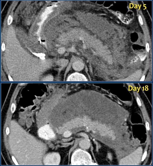 Trường hợp này là ví dụ điển hình của hoại tử tụy nhiễm trùng.