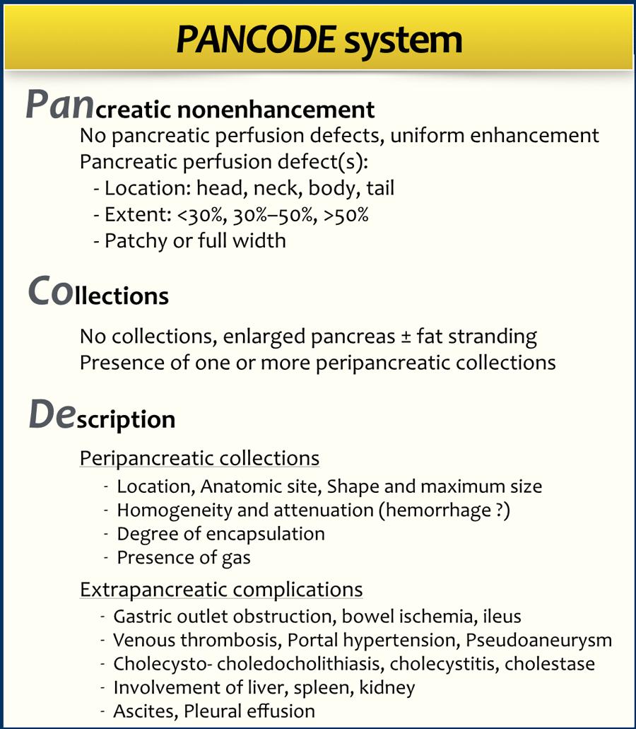 - Mức độ nặng về hình thái của viêm tụy cấp (bao gồm hoại tử nhu mô tụy) chỉ có thể được đánh giá đáng tin cậy qua hình ảnh học sau 72 giờ kể từ khi khởi phát triệu chứng.