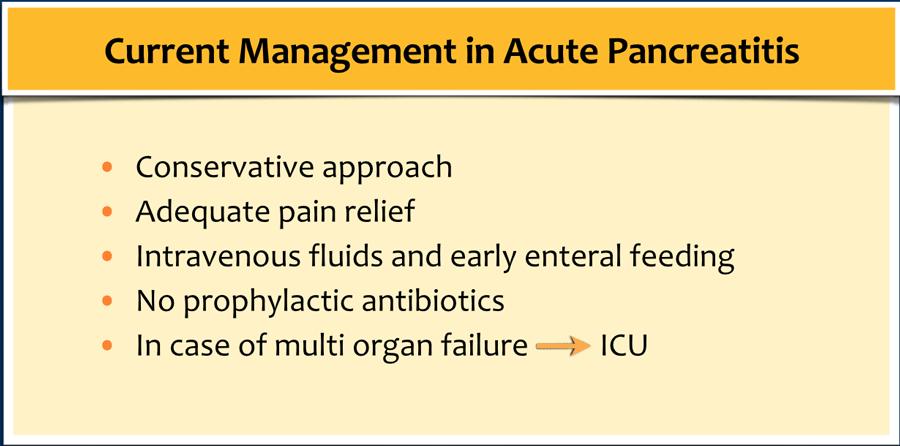 Phương pháp xử trí hiện tại đối với viêm tụy cấp là điều trị bảo tồn càng lâu càng tốt.