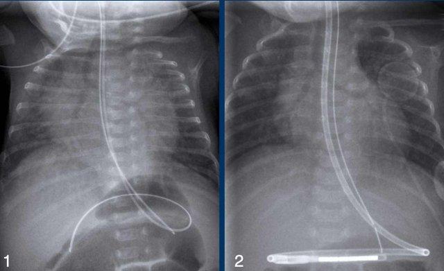 Các giải thích về vị trí ống, đường truyền và vị trí catheter được thảo luận trong Ống và đường truyền ở trẻ sơ sinh.