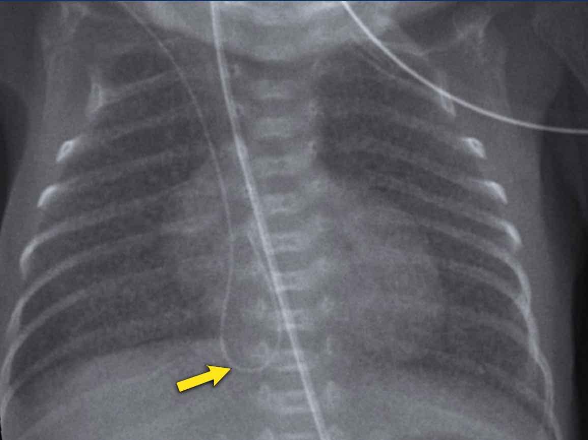 - Ngay sau sinh, đường tiêu hóa không chứa khí, do đó có thể không được nhận thấy hoặc giả lập một bất thường trong phổi.