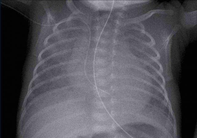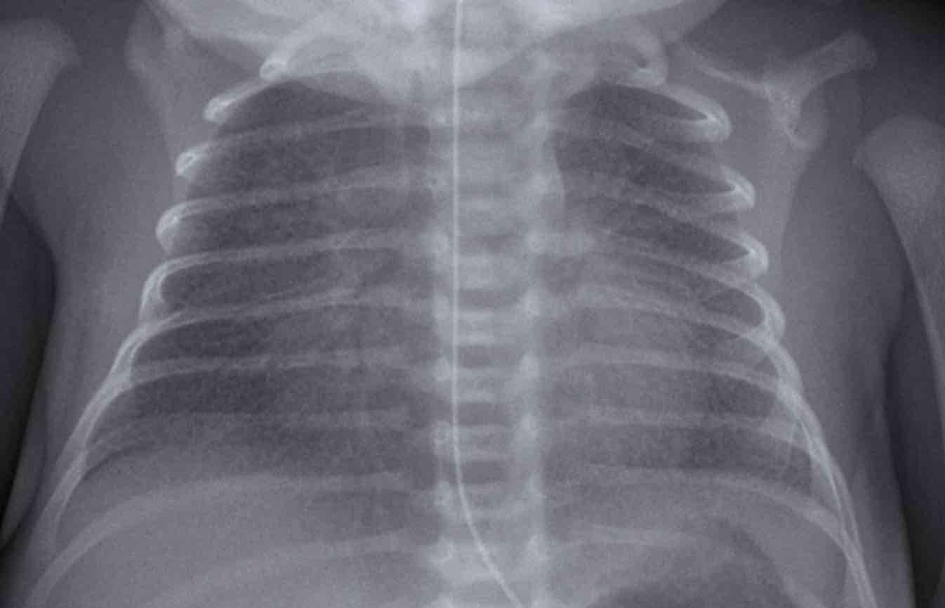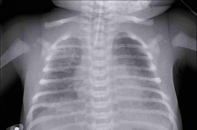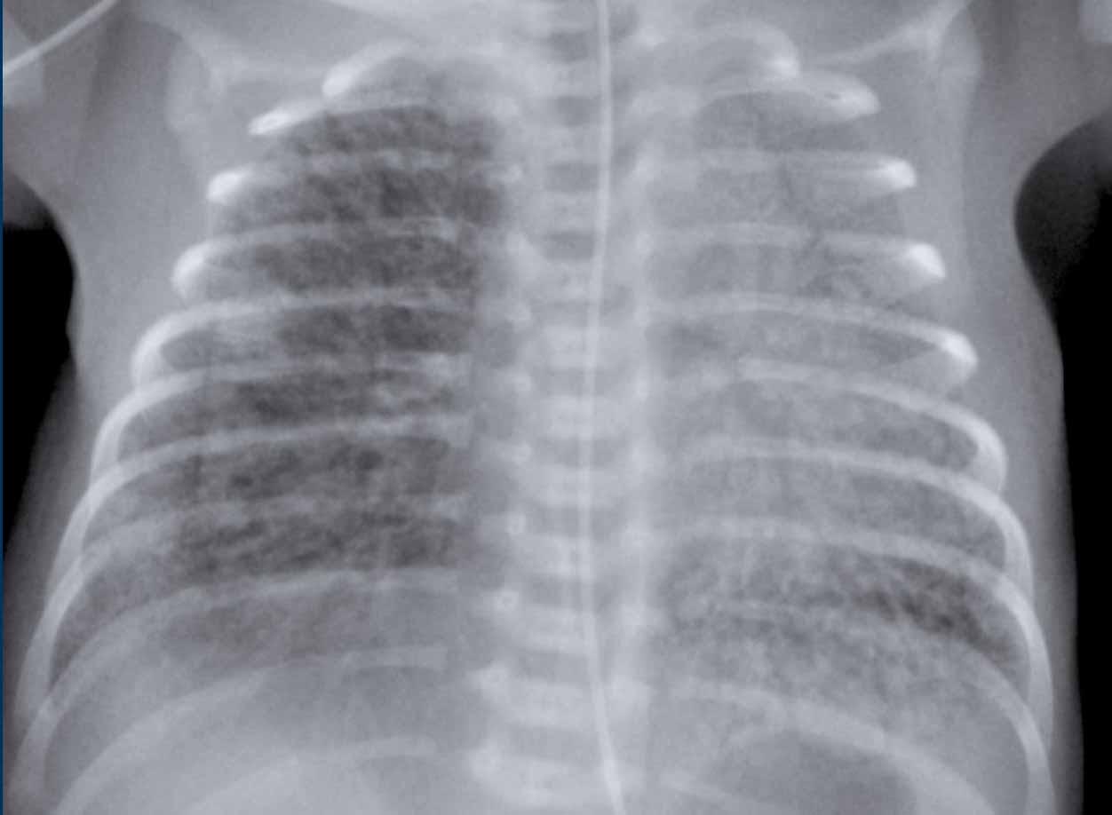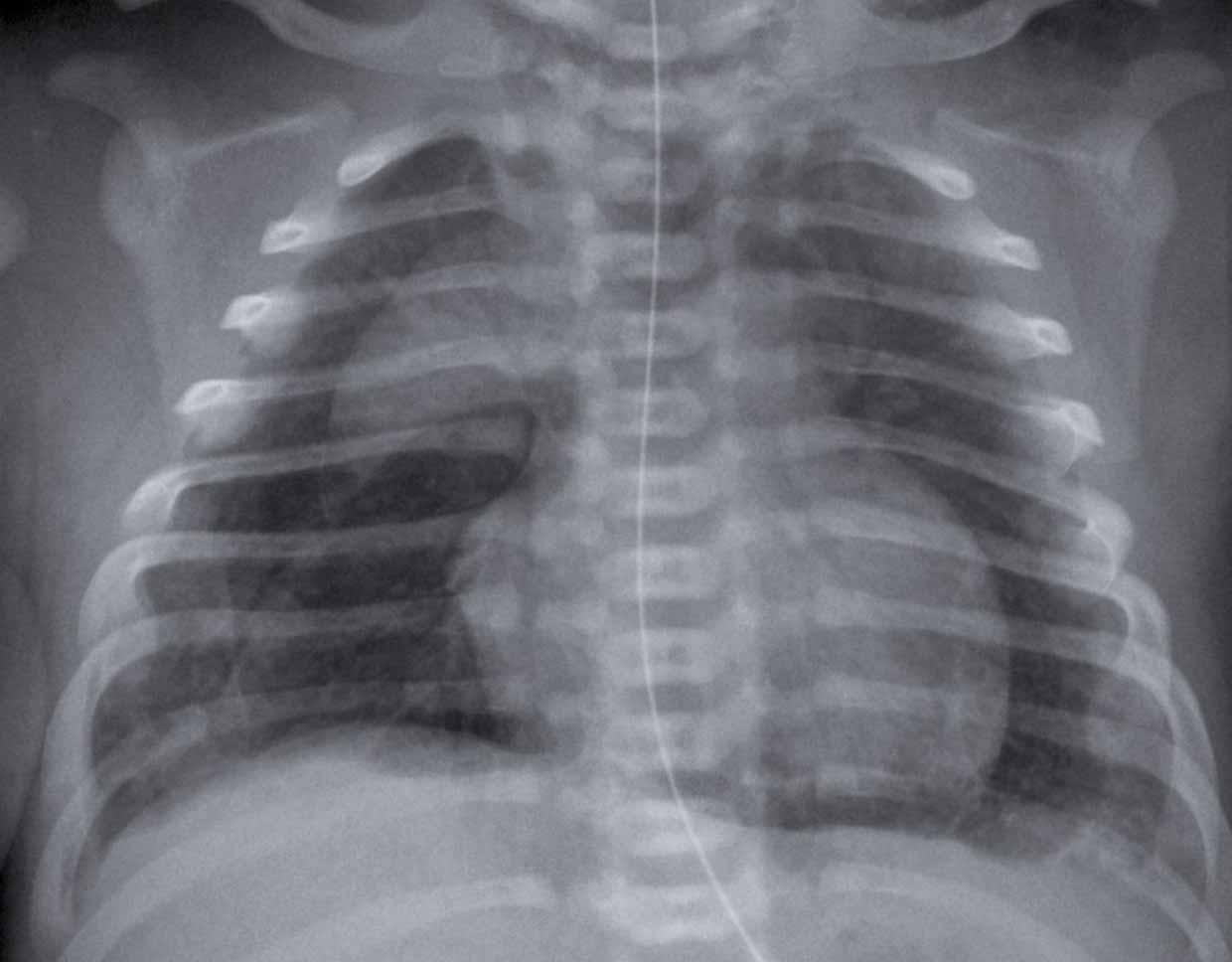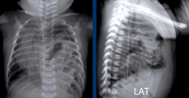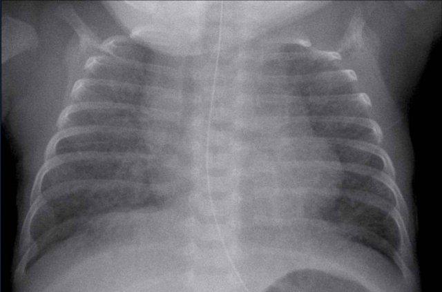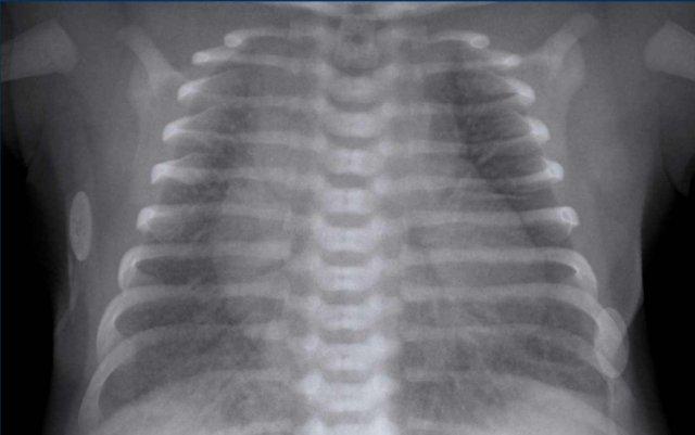Hình ảnh của một trẻ sơ sinh đủ tháng với suy hô hấp nhẹ.