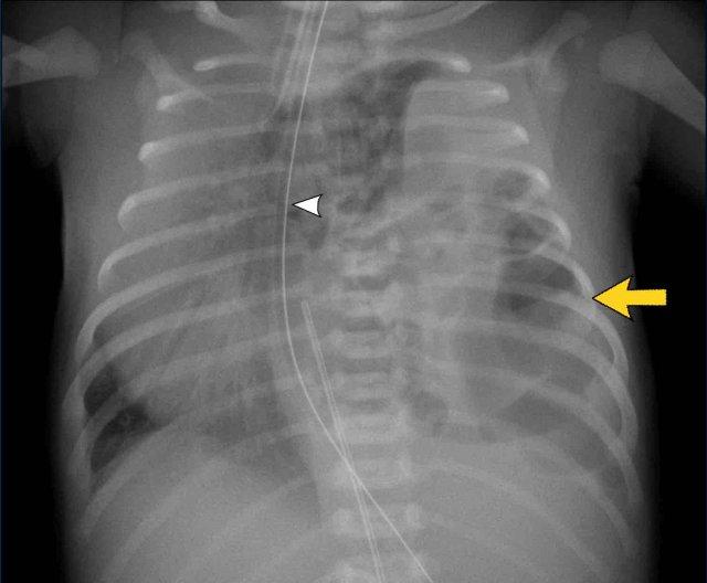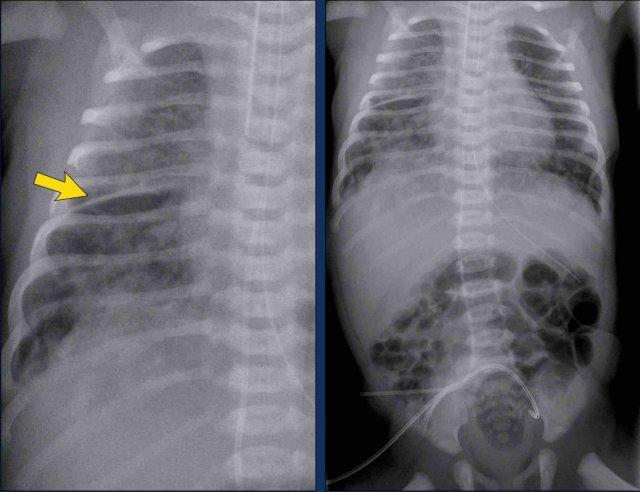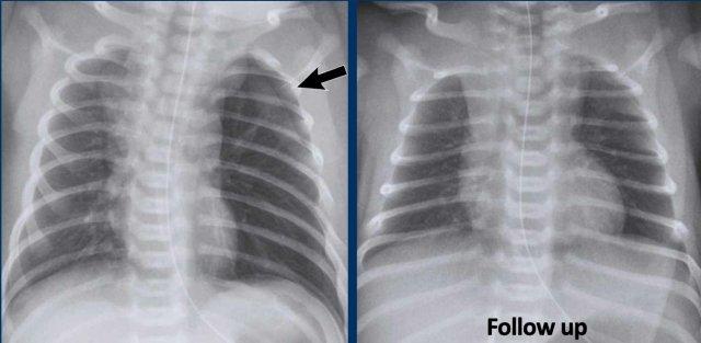 có thể gặp trong trường hợp đặt ống nội khí quản sai vị trí và như một biến chứng, ví dụ trong hội chứng suy hô hấp (RDS) và hít phân su.