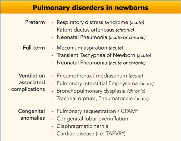 Dưới đây là danh sách các rối loạn phổi thường gặp ở trẻ sơ sinh