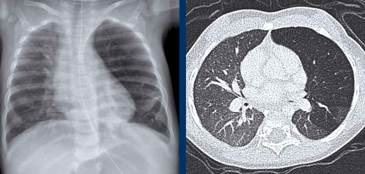 Hình ảnh của một trẻ sơ sinh 6 tháng tuổi với các triệu chứng hô hấp nhẹ.